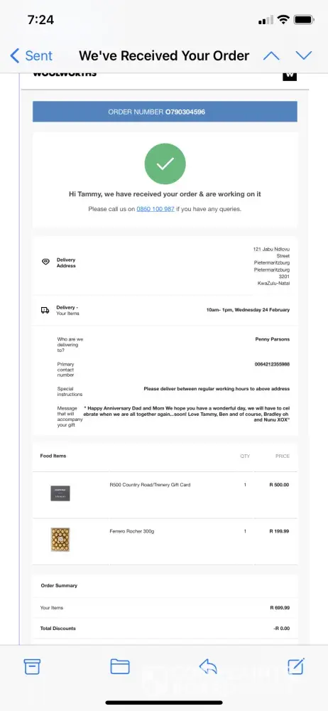 In February 2021 I brought a R500 gift voucher for my parents for their wedding anniversary. I am horrified to hear that when my mom when to use the card the following month it had not been loaded/had no funds. She tried on two seperate occasions to use it but still no luck. She has been in touch with Woolworths with order numbers etc but they are still giving her a hard time. I am determined to not let someone else picket their anniversary gift and am very disappointed with their poor customer service. I am weary to purchase a gift card again in the future