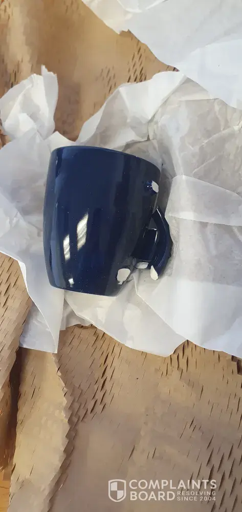 Desired outcome: Replacement of the broken mug and delivery of the one mug short-delivered.