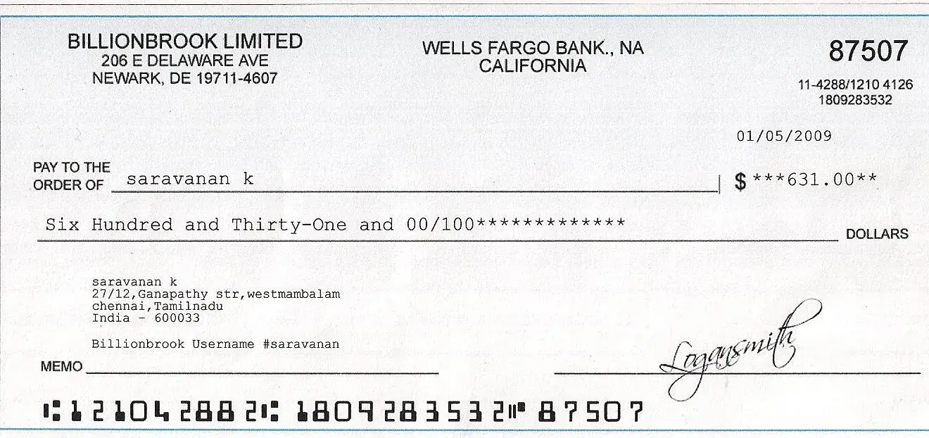 Mr.A.Mayil Vahanan (a contracted technology adviser of Billionbrook) ... Mr.A.Mayil Vahanan & Uma Parvathy Ecoup Net Solutions (Fake Indian company) No:4, 8th street, kandhi nagar, tirunelveli tamilnadu india. Please be aware of these fake websites http://www.billionbrook.com (fraud data entry portal) http://www.theeteller.com (fraud online payment portal) here i have enclosed proofs (fake cheques)