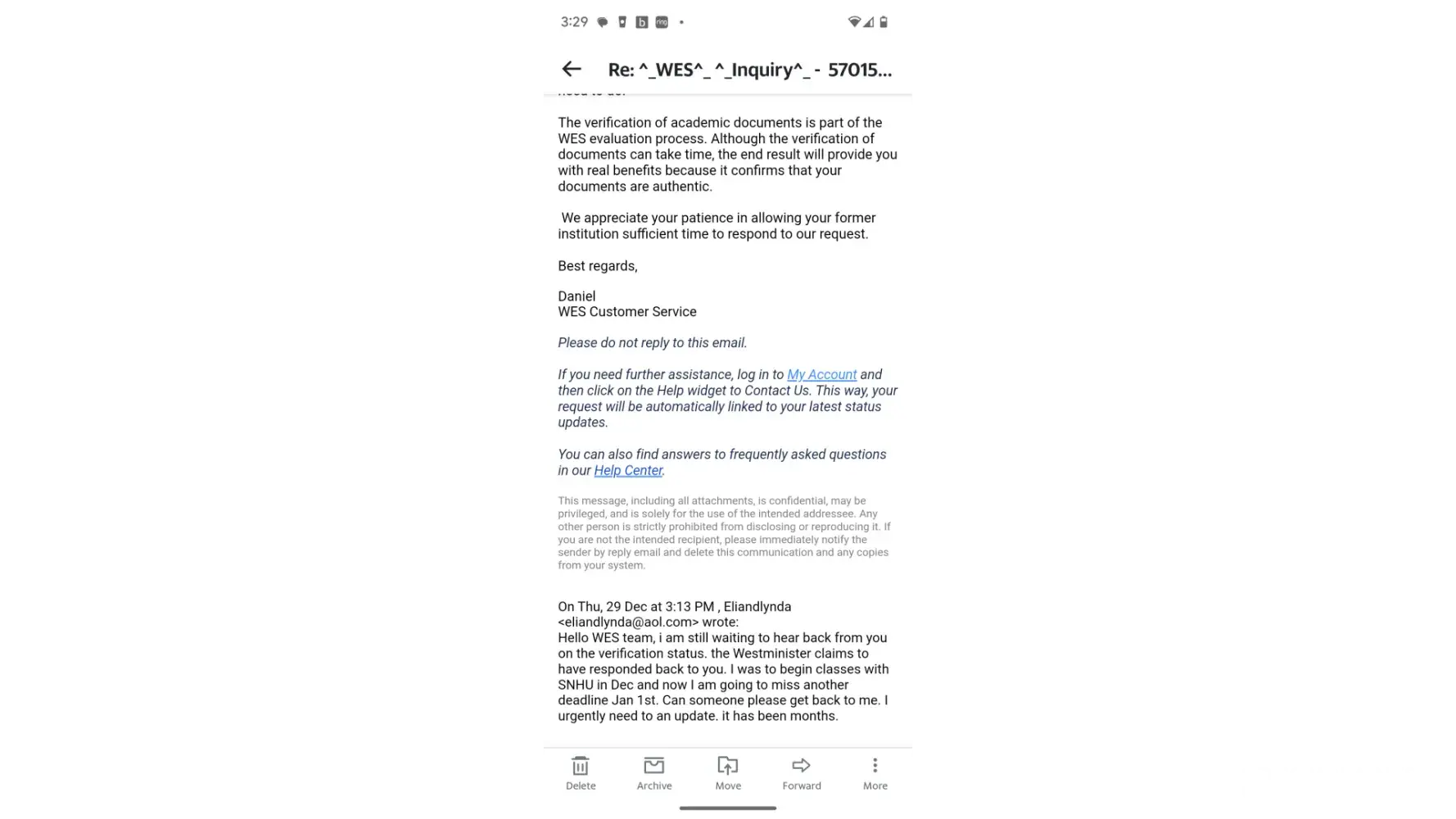 My evaluation got completed in 2022 and no changes after that … no inquiry no request … nothing! Now in 2025 I wanted to order a duplicate for an organization which has a deadline and wes is not providing any support after 10 times call … I called them several times and they asked me to wait for 5 business days and nothing happened… nothing! My evaluation status is still pending (under review)