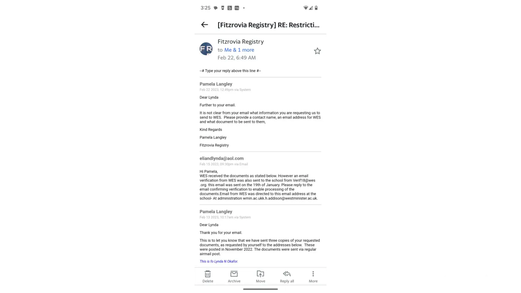 I was later told by WES that a verification email was sent to University of Westerminter Jan 19th .