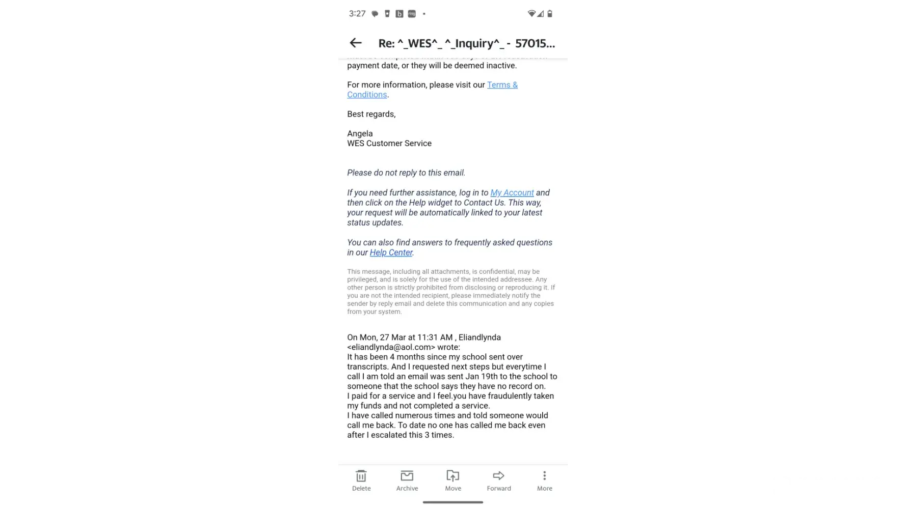 Not happy with wes services