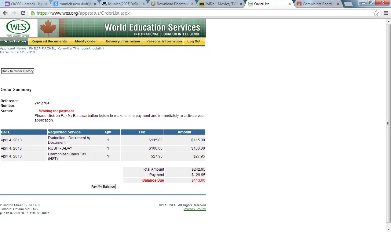 I had submitted my transcripts to wes CANADA for evaluation. The mode of evaluation selected was WES BASIC. Out of curiosity i mailed the customer service asking them my options of speeding up the evaluation. On their part, instead of merely communicating and confirming with me if i need to go ahead with the fast track options, they upgraded my mode of evaluation from BASIC to 3 day rush mode . They then intimated me via email that i have to pay $113 more. I immediately reverted asking them to revert back to the BASIC mode, to which all they had to reply was i have to pay up $113 more. Its been almost 2-3 weeks that my evaluation has been suspended, by this time BASIC mode of evaluation would have completed. Even after repeated pleas, they have not responded to my request and the status still says pending ...please find below the information about my transaction(i have attached a screenshot of my transaction for your reference)