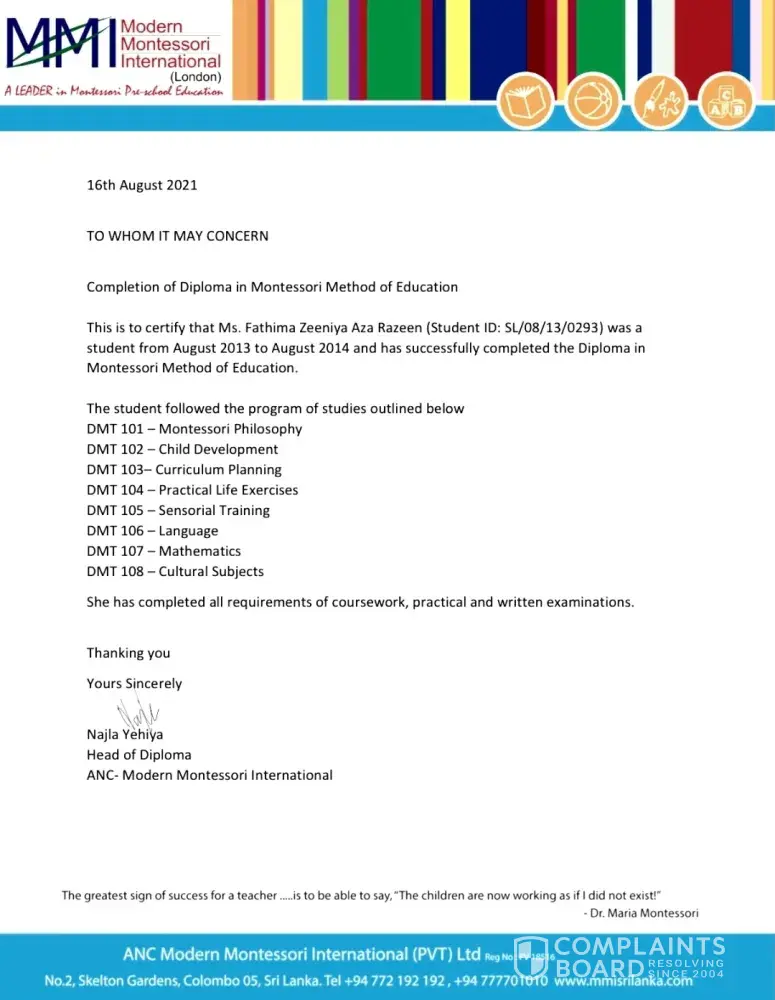 I got my wes report last year it has assessed my diploma in early childhood education in modern Montessori International London.