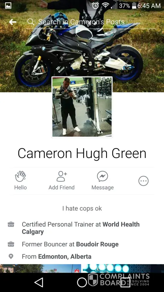 Calgary police released a statement on facebook looking for one of your employees aka personal trainers on domest assult charges. Not only that but the felon is seen replying to every comment instead of turning himself in. Is this the kind of people you hire? Id like to see some background check and maybe some semblance of policy to ensure im not paying good money for a trainer thats currently wanted by policy. More than once in the past few months aka ongoing problem with him.