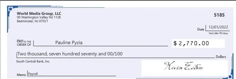 Fraudulent Paychecks Issued