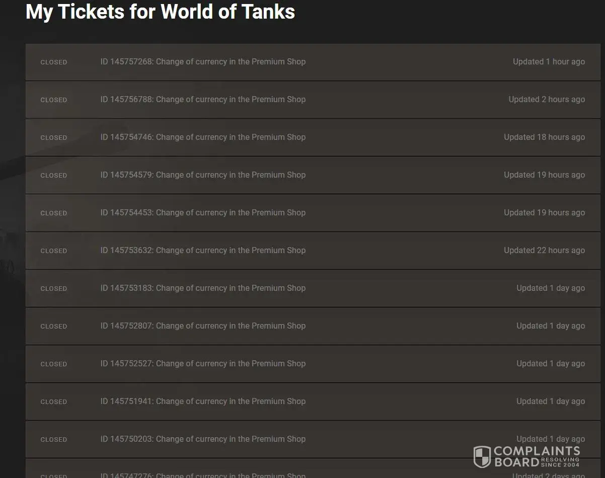 - While World of Tanks has a high level of trust, our investigation has revealed that the company's complaint resolution process is inadequate and ineffective. As a result, only 0% of 6 complaints are resolved. The support team may have poor customer service skills, lack of training, or not be well-equipped to handle customer complaints.