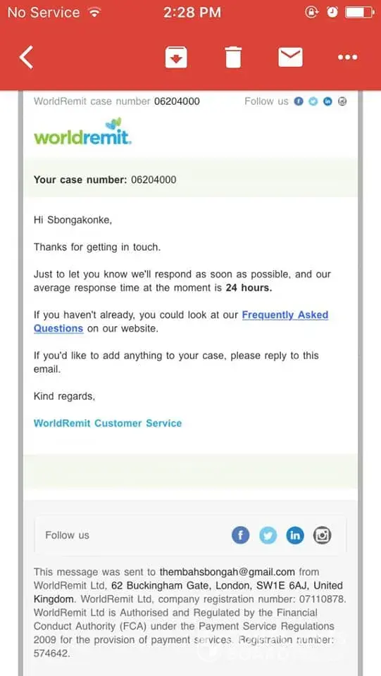 On monday june 11th, I still had not received a reply to either of my online enquiries. It was now one week since I had deposited my funds into world remit's account, and still there had been no change to the status of my transaction. I decided to cancel.