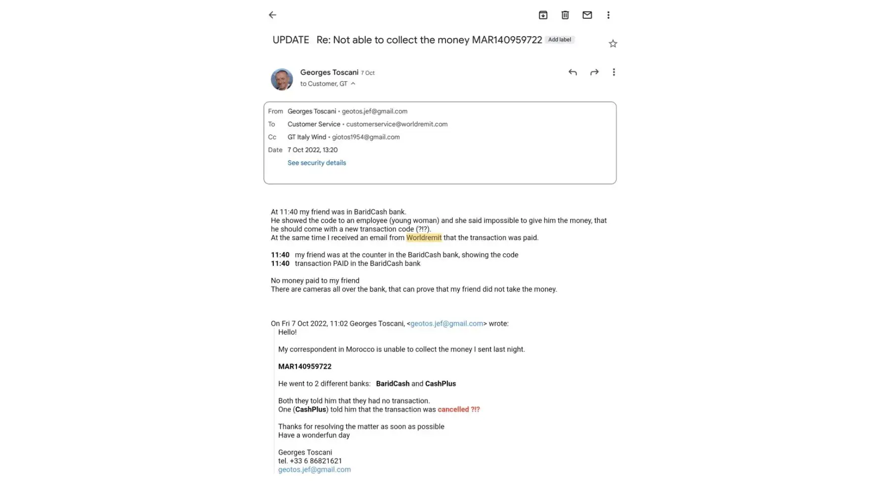 My probably has been solved. All in all, I have been using World Remit for many years, and this has never happened before. I will continue to use and trust them in the future, as long as this doesn't happened again.