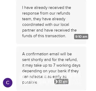 WorldRemit Agent Michael Diofre (7/8/2021, 7:51:44 PM): Lesley, I tried cancelling but there's a technical issue as of the moment. This has already been forwarded to the technical team.