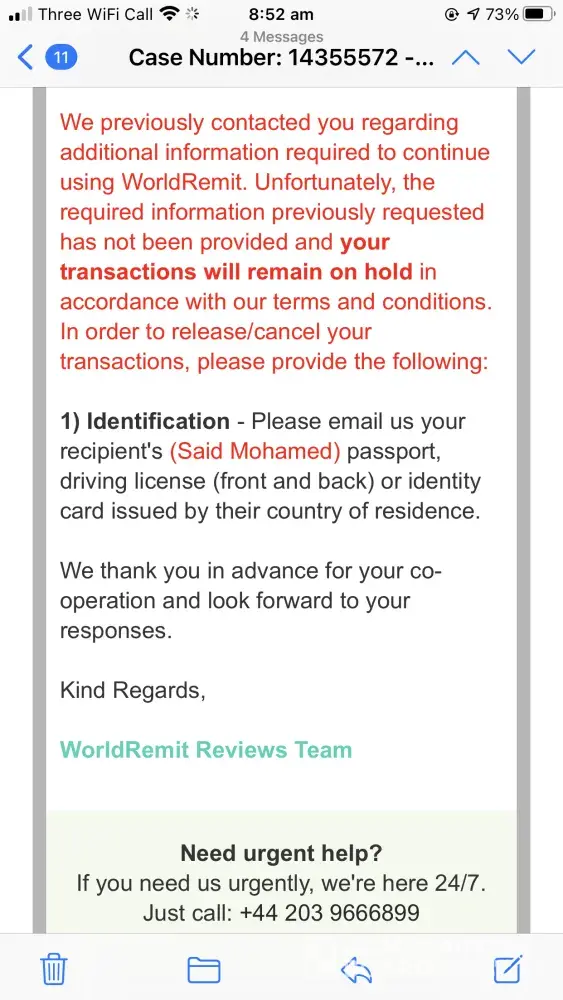 WorldRemit Customer Service".