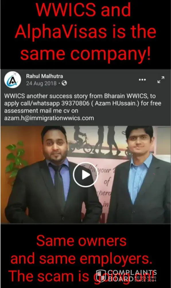 AlphaVisa is the new name of WWICS bahrain, who close the office and run away with my brother money and many more victims (2 years ago)!