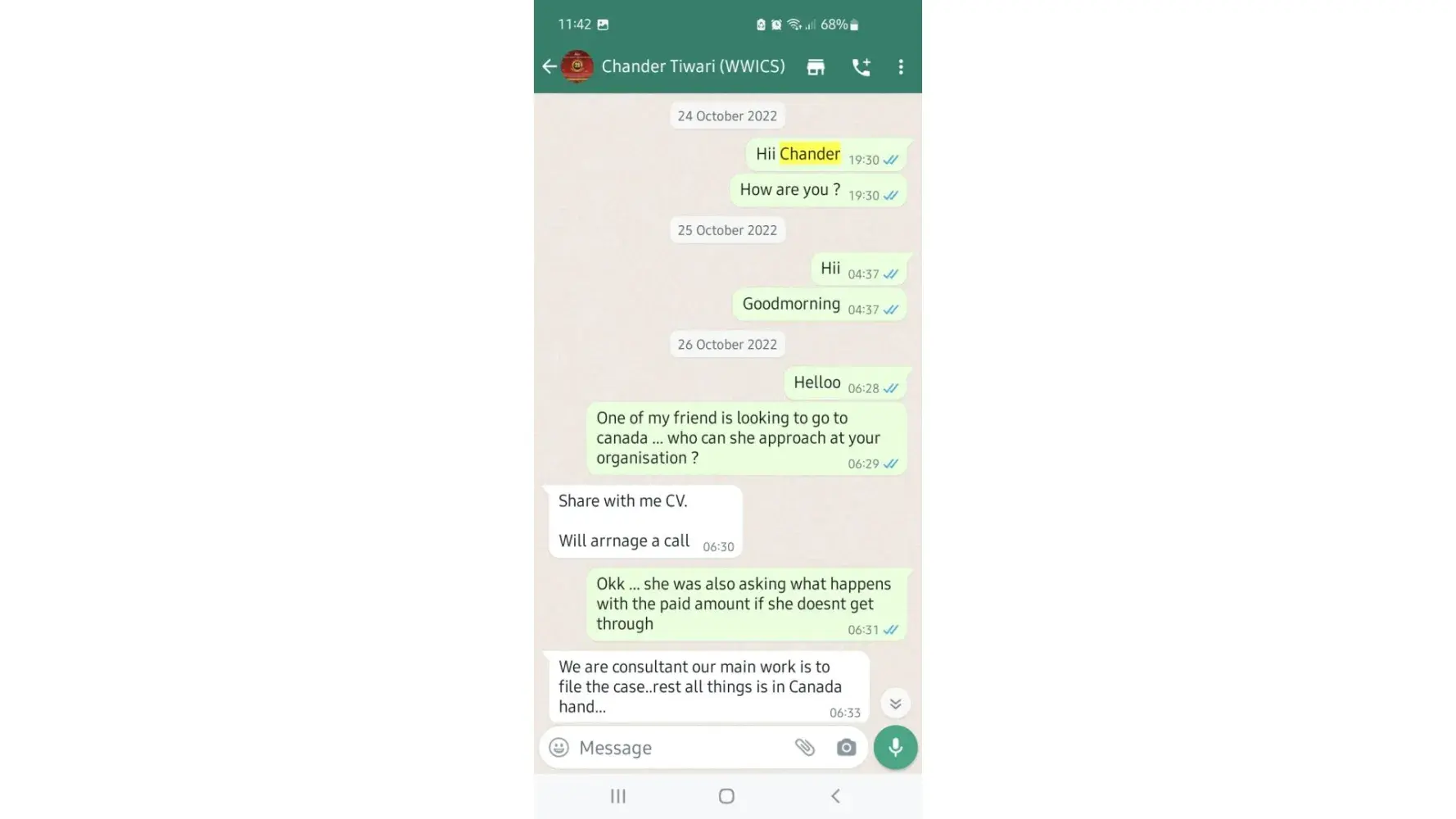 Now the whole process changes, Naushad Ali Khan starts calling me continuously and asked to pay 1, 80, 000 (one lakh eighty thousand) on every call. Till now, I don't understand, in which immigration there is required of such a big amount in advance.