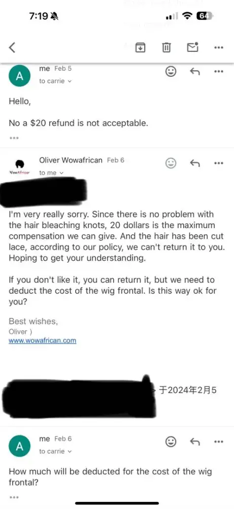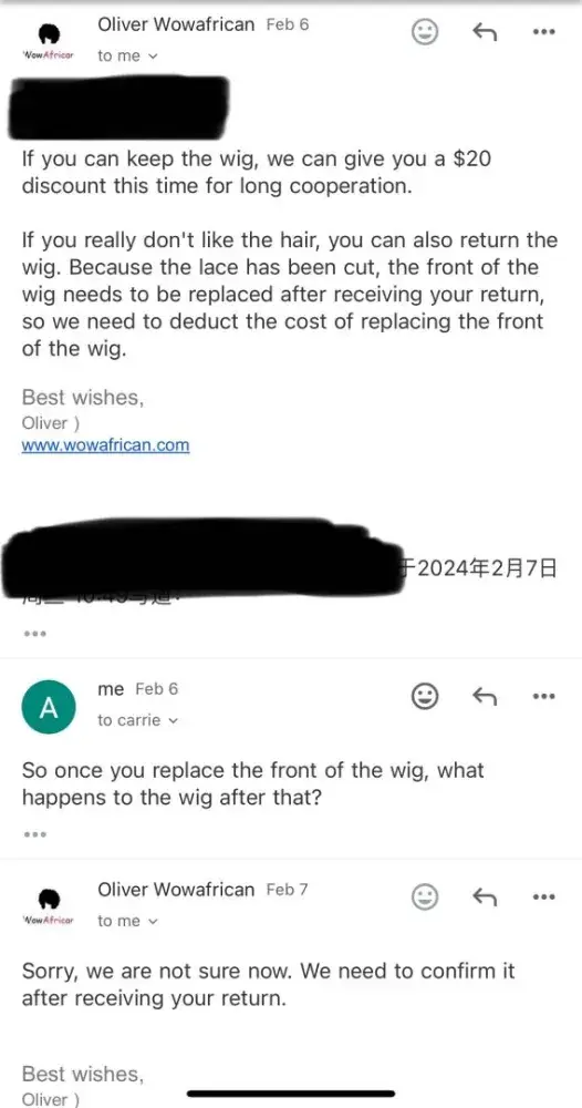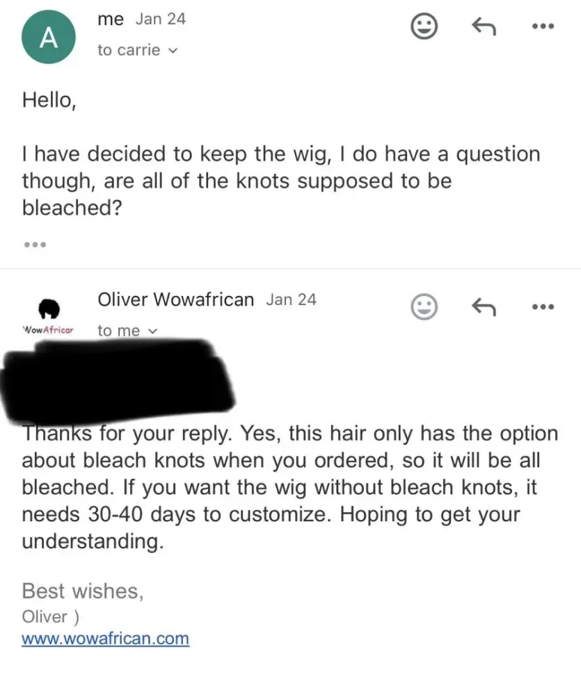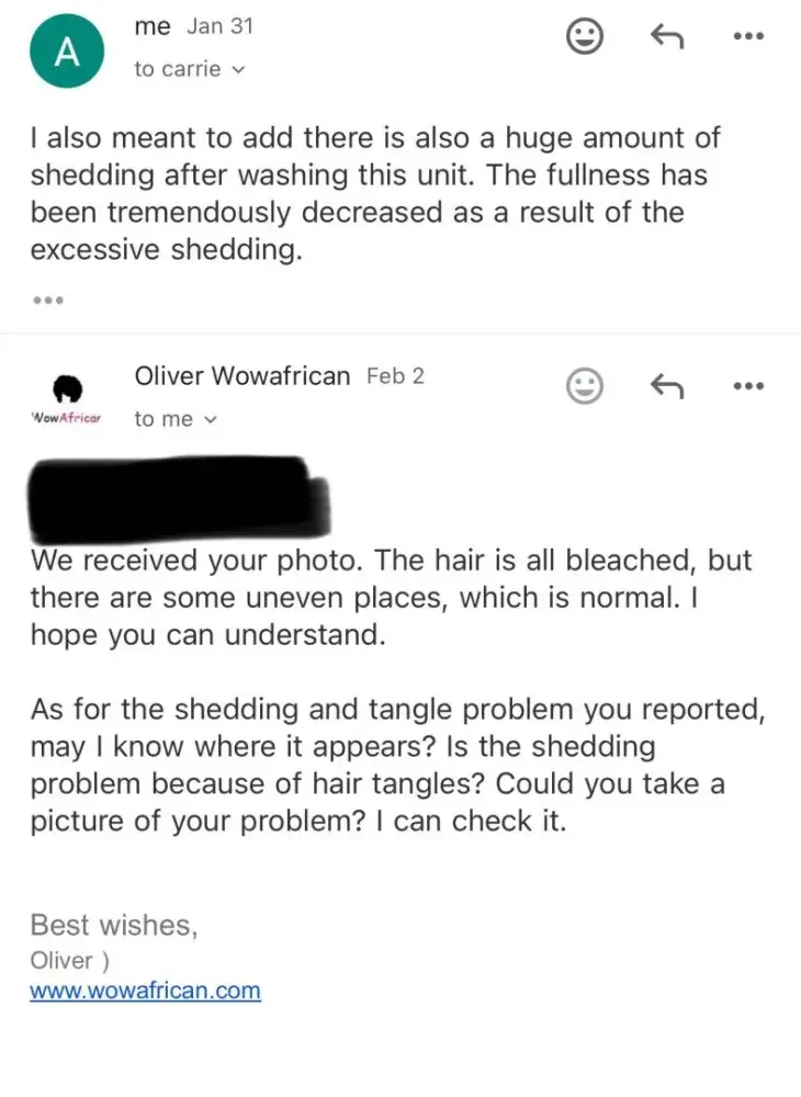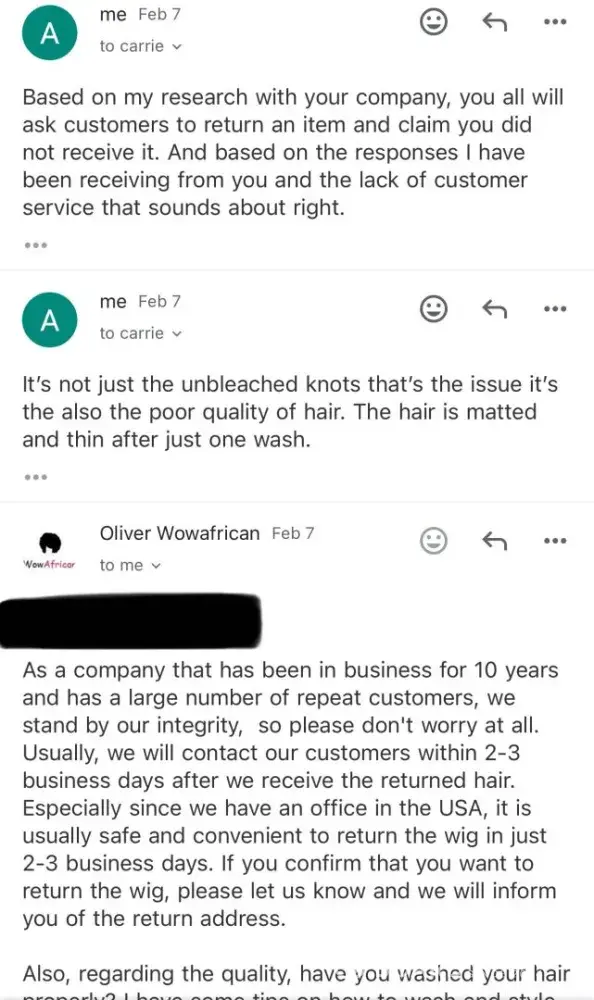 I am writing to formally complain and warn other consumers about the subpar quality and deceptive practices of Wow African Wigs. My experience with Wow African has been nothing short of disappointing and frustrating, and I feel compelled to share my story to prevent others from falling victim to their unethical business practices.
