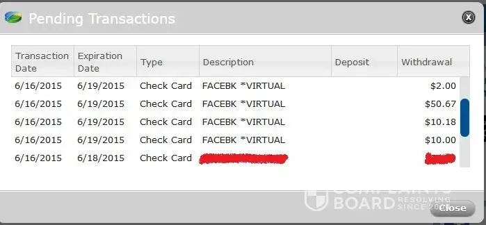 Consider yourselves lucky. I was hit with Facebook AND other fraudulent charges on my Credit Union Debit/Visa card. Out of 12 pending transactions, 1 was legit.