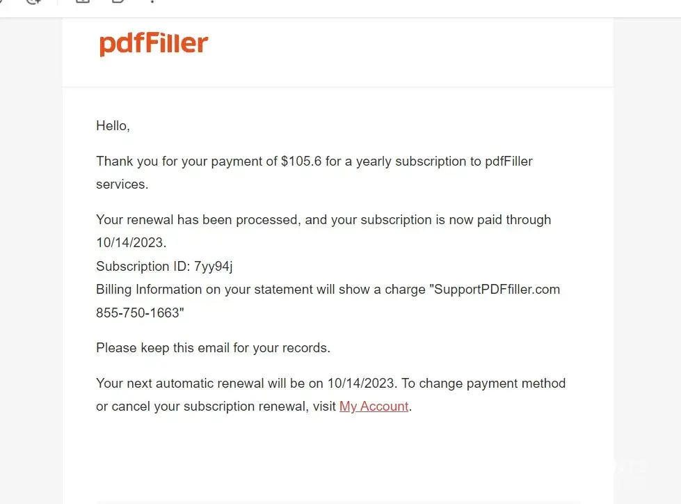I was suprised that my bank account was deducted by support pdffiler for an amount of $96 which i recall that after i used the platform i cancelled my subscription right after an hour. But why do you still have to take out money from my bank account? When in fact i didnt sign up for a year subscription.