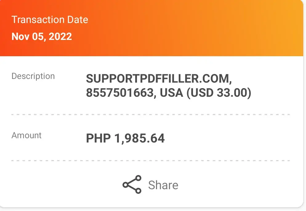 PdfFiller charged my card $96 dollars after I used their free trial. I spoke with someone requesting an immediate refund. I feel as of I have been scammed. I don't recommend that anyone uses this company. I spoke with a gentleman named Mack who said that I should be expecting a refund.