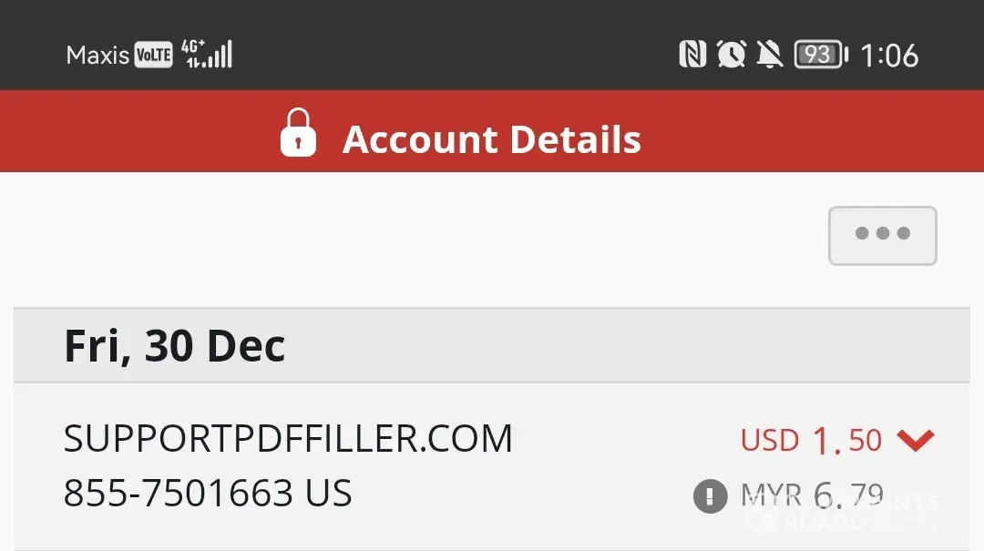 Cancelled my 30-day free trial within a day of starting it and found a $1.75 “Support PDFFiller†charge when I checked my bank account. Any way to get this money back?