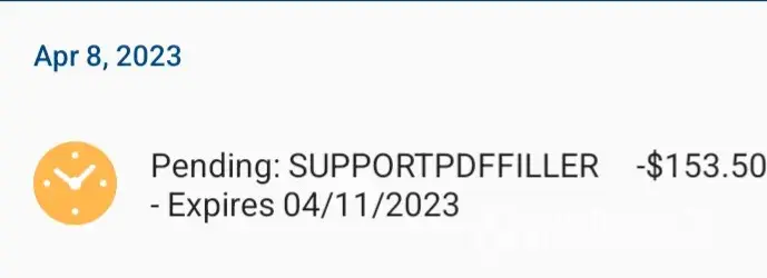 I just noticed an unauthorized charge of $102.34 was taken from my checking account by PDFFiller . This pending Transaction