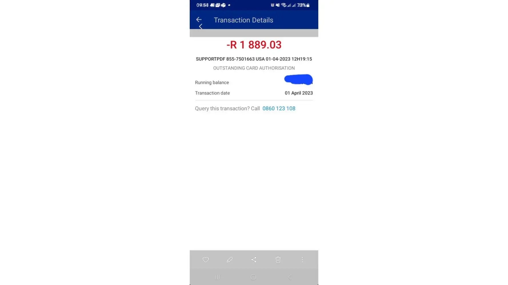 Unauthorised credit card charges totalling $100 on the 1st April 2023