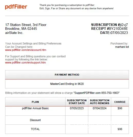 PDFFiller review: They charged me without warning on 13/5/2023 amiunt $96 I’m so pissed off and they didn’t even remind me. The first time i use this they charged me also but the page say it’s free.