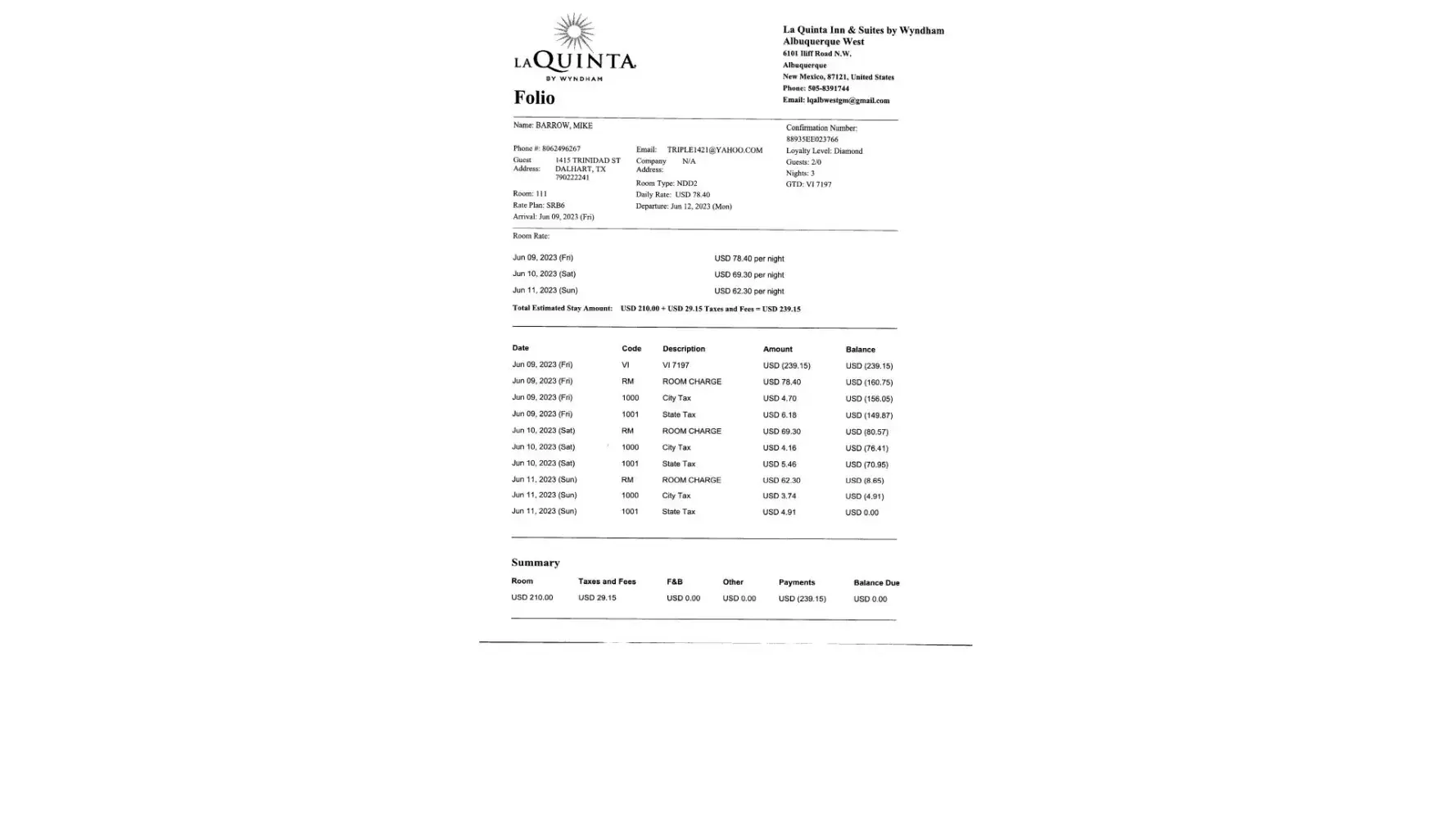 That same day, May 27th, LaQuinta by Wyndham charged my account 379.51. I am requested the full refund! It is fraudulent to make statements (Booking.com) that would lead to a reasonable conclusion that this reservation would be canceled. Because the reservation was not canceled, I have lost money and no one, not Bookings.com nor Laquinta by Wyndham is refunding my account. LaQuinta represented that the lodgings would be clean and acceptable, and I contend that that was not the case. LaQuinta did refund 141.93, leaving a balance owed of 237.58.