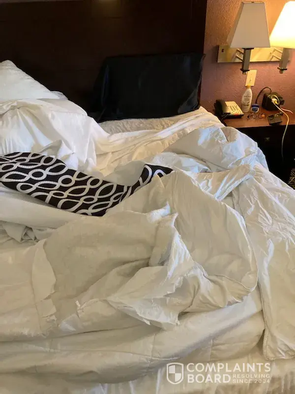 I requested another room when we got into that room again not cleaned as a hotel room should be. Room had a musty smell I was so uncomfortable sleeping or staying in that hotel I felt like I was in an hourly motel so we decided to leave. I checked into Drury Inn & Suites for what turned into a 4 night stay not a 2 night.