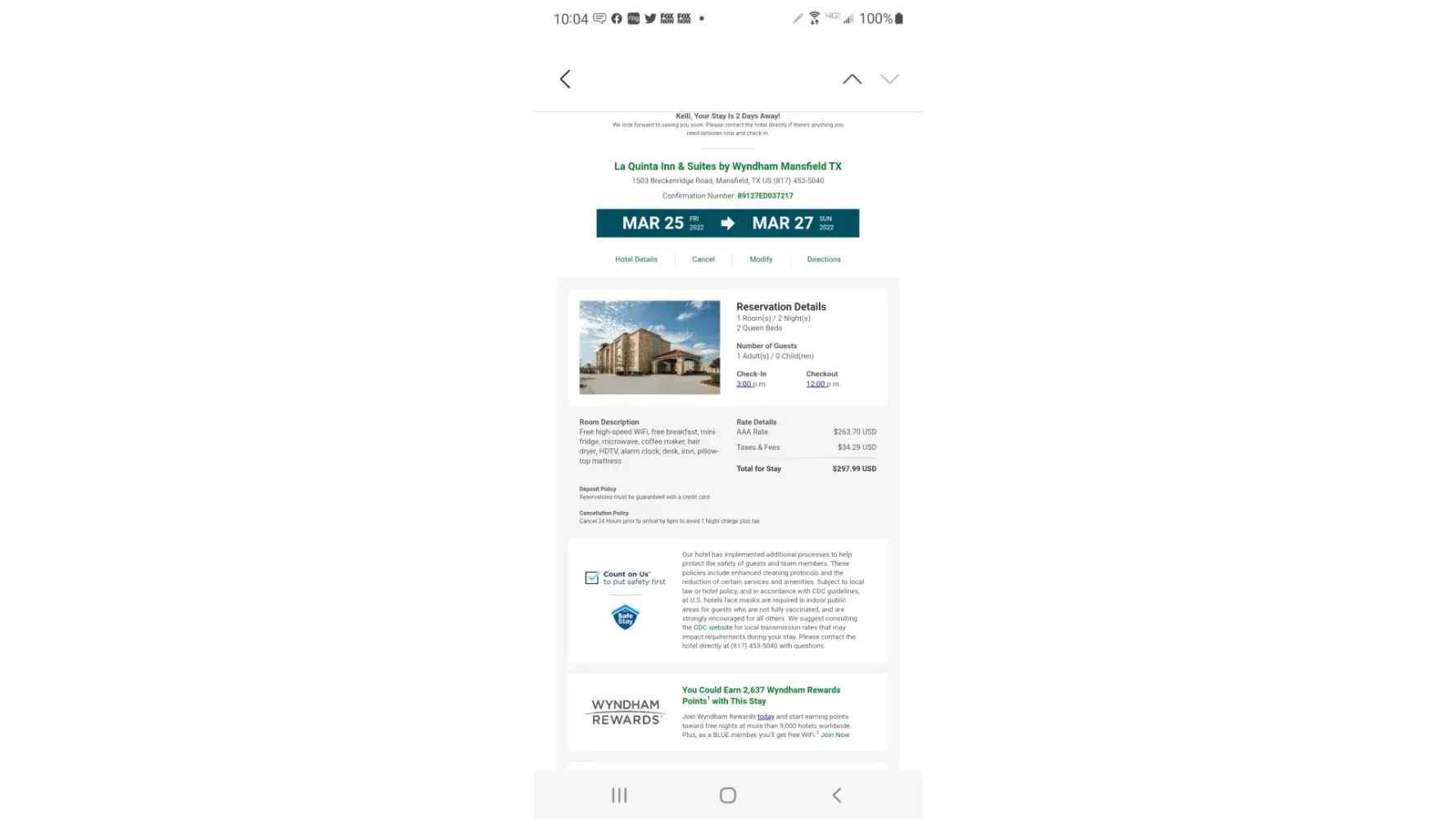 staff at “La Quinta by Wyndham at Mansfield†in Texas. We stayed at your hotel from March 25th through March 27, 2022