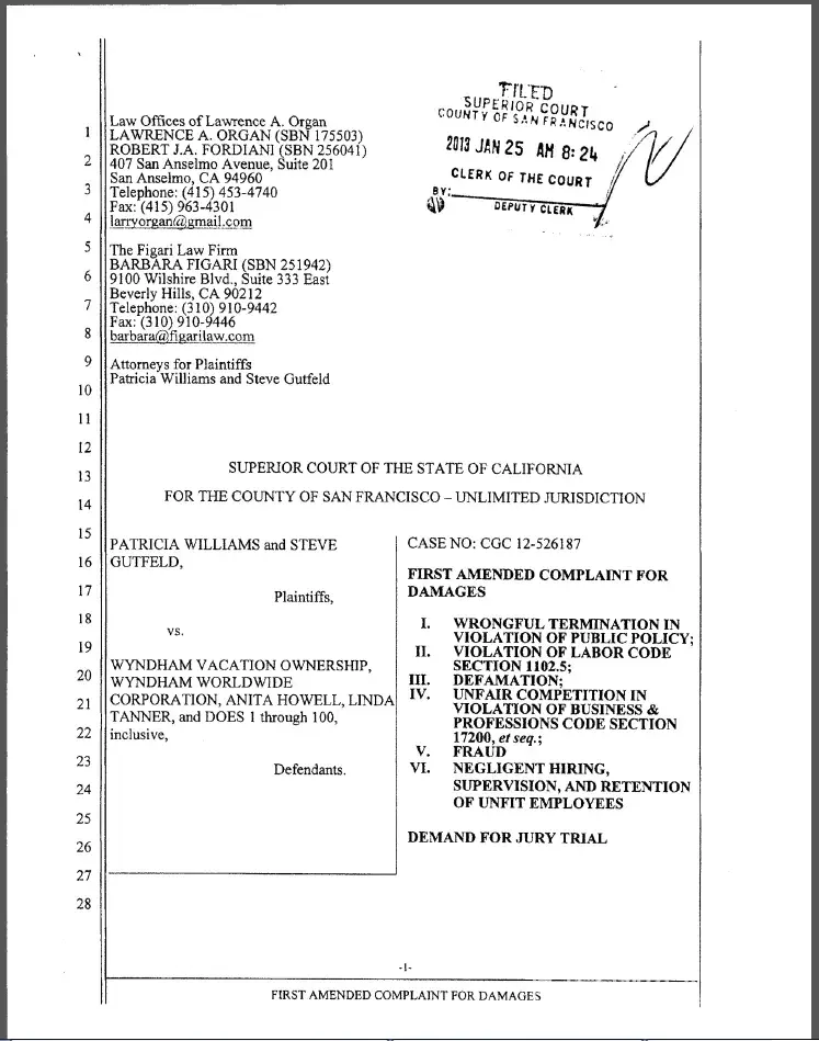 The following is an excerpt from the lawsuit of Patricia Williams v. Wyndham Vacation Ownership, et. al. being litigated in the San Francisco County Superior Court. The facts set forth in the Complaint reveal what is widespread throughout Wyndham. The very same fraudulent sales schemes are being repeated at virtually every Wyndham Resort. These practices constitute an organized pattern and practice to defraud senior citizens in violation of numerous state and federal laws. Consequently, Wyndham’s officers and directors should be held accountable for what appears to be rampant criminal activity throughout its timeshare organization. We call on Stephen Holmes, Scott McLester, Franz Hanning, Ryan Morettini, Myra J. Biblowit, Brian Mulroney, George Herrera, James Buckman, Michael Wargotz, Pauline Richards to immediately stop this behavior and reform Wyndham’s timeshare business. We also call on the Board to voluntarily take steps to pay the defrauded seniors back – including settling the lawsuits brought by these poor elderly claimants. You now are on notice that this activity is occurring throughout your company.