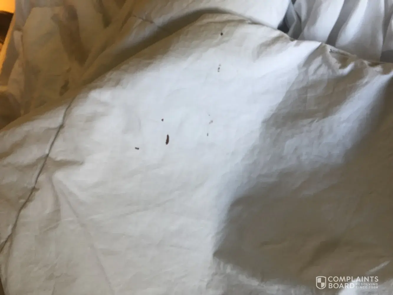 This morning we discovered blood on the back of one of the pillows which prompted my husband and I to pull back the covers that were tucked and there was blood at the bottom of comforter. I spoke with manager Nirmal Bath and he was extremely rude. He stated he gets people like us every month trying to get a free room. He wouldn't take accountability for hi...