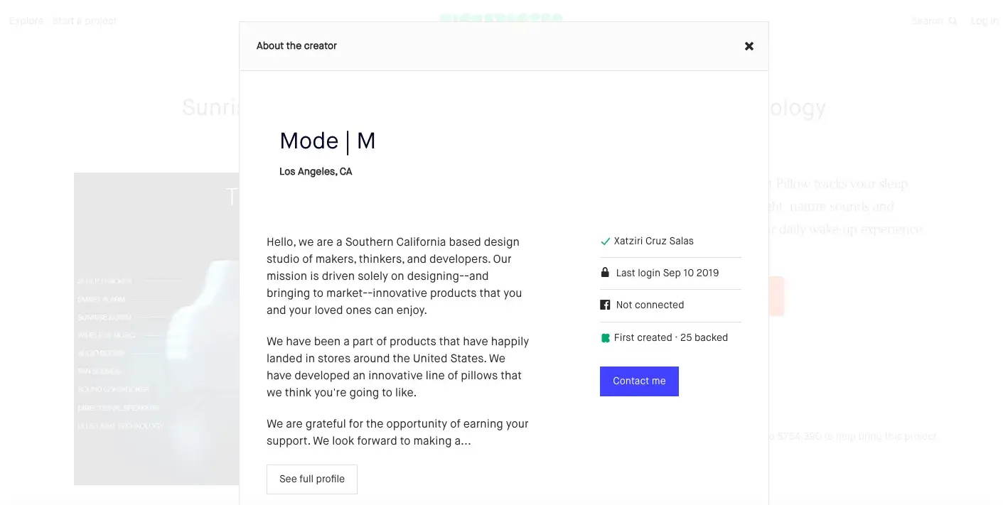 Mode|M seems to have backed 25 projects on Kickstarter. Would this be a way to get their addresses and hold them accountable for whatever scam it is they're pulling with the Sunrise Pillow?