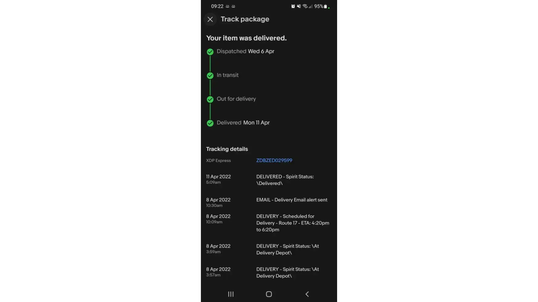 I purchased a greenhouse from ebay and item number is [protected]. A 10ffx6ft greenhouse. It was supposed to be delivered on 06th April 2022. On 08th April a delivery of 1 of the 2 boxes arrived via xdp express. The driver said he only had 1 of the 2 boxes so I returned the delivery and signed his delivery note and marked as refused. Apparently on 11th April 2022 I received my delivery which I did not. My wife and I were home and I think I would have notice a 10x6 greenhouse left. I have been refused a refund from seller in China, I am not allowed too talk to xdp delivery only the account holder can. Ebay said I have too complain but everything I open the complaints page it says network not available. I need to know why xdp have said it was delivered when it hasn't.