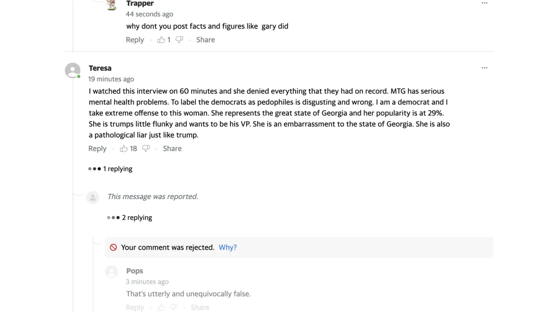 Wrong! I am a left leaning democrat who often posts comments in support of trans rights and BLM, as of three days ago every comment I write is rejected the moment I hit enter. So as much as you might want to be a victim of some vast "liberal media" conspiracy, it just ain't so.