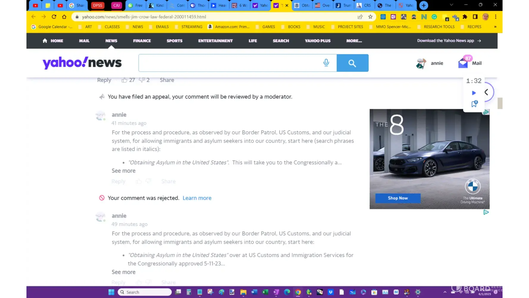 Every single comment I post, Yahoo automatically rejects it. I file an appeal and it is rejected within 15 seconds. Here is my most recent.
