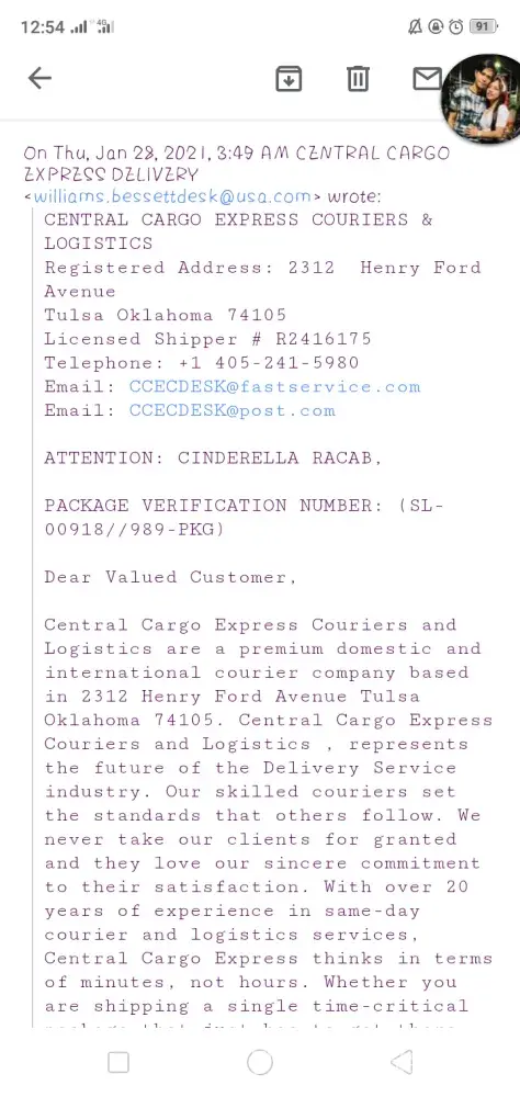 Mr. William Bessett name himself from Yahoo/ Central Cargo Express and Logistics