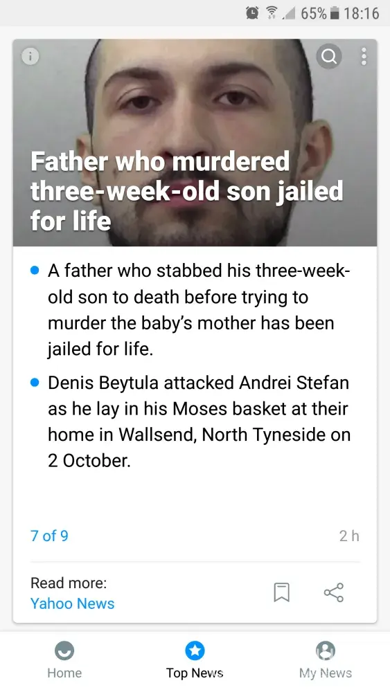 However when I went to check my mail this evening (without clicking on anything), I was forced with the graphic headline 'Man forced mother to listen to children being raped'. Now I know yahoo are not responsible for how someone emotionally reacts to distressing news.