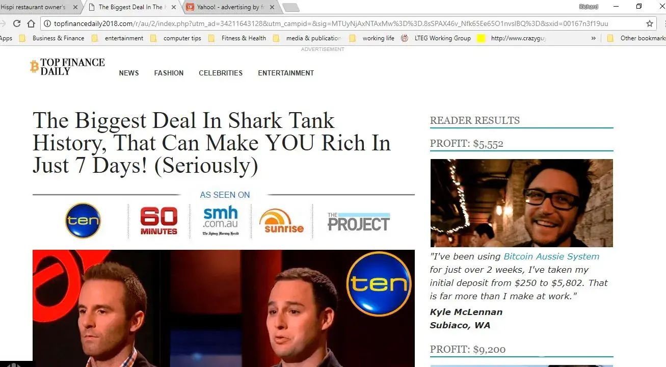same fake news/advertorial attributed to Shark Tank in Australia. What is Yahoo doing about taking this story down? Steer clear everyone!