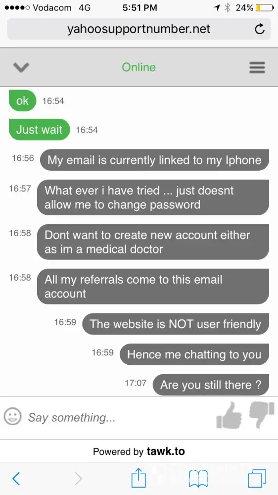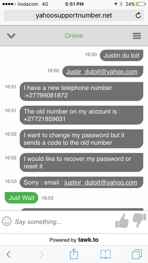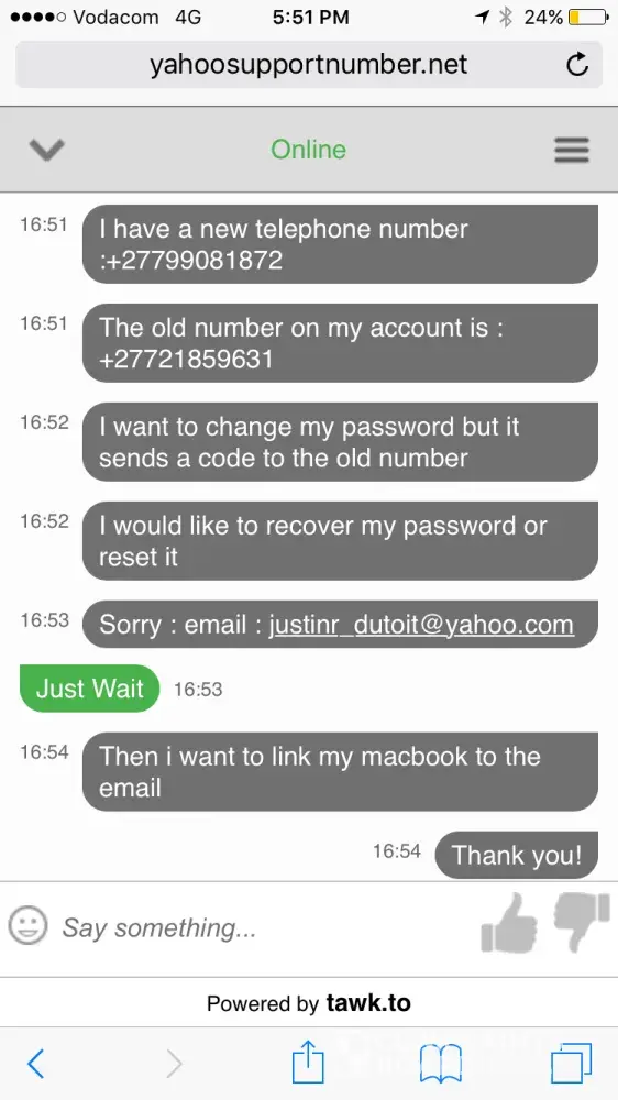 Im stunned and extremely dissapointed! I've had a yahoo email account for around 13 years. Im currently staying in south africa after doing a masters the Netherlands for two years. I lost my old telephone number which is obviously linked to my email and unfortunately have forgotten my password. Ive tried resetting my password without any success. The email is linked to my Iphone and is accessible there : dont want to log out as i wont log in again. The yahoo support made me wait for 40 minutes and said they cant help. I tried phoning but doesnt work in my country. I dont want to change my email as im a doctor and all the referrals come via this email. The help support website very unhelpful. Just dont understand why a link to my current email not possible to reset password? Any other suggestions ? This is my last resort of obtaining some sort of help...my details : [protected]@yahoo.com (im willing to be asked security questions)