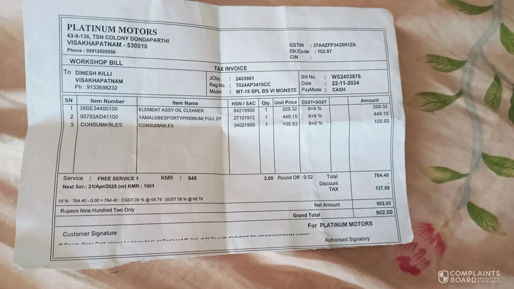 Which cost about 2.3 lakhs rupees. After using it for 1 week it get noise from the drum and after and after that I give for 1st servicing and they gave me after servicing and after getting too much of noise in the back side disc place while I was driving. Again' I gave for repair but there was no resolution from the service team and there is no proper...