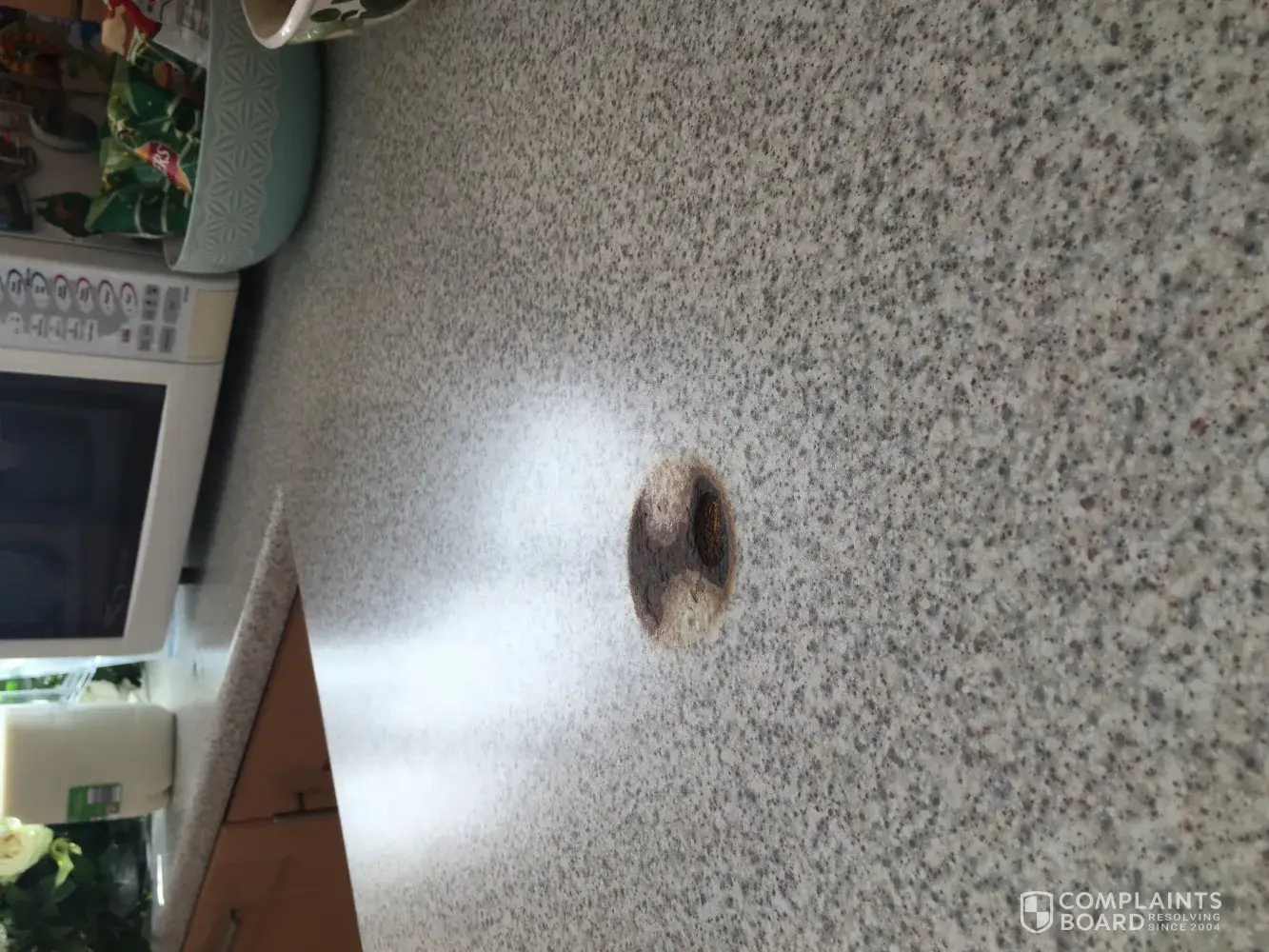 candle tea light and holder on our breakfast bar in the kitchen. After about an hour I could smell burning only too find that her breakfast bar in the kitchen was on fire with massive flames burning from where the candle must have sparked and set the breakfast bar a light. This caused major damage to my mother's kitchen costing in excess of £3000 to repair and replace with smoke damage and a very burnt breakfast bar which will have to all be replaced due to not being able to match the existing worktops. My mother has never claimed on her insurance in all her years of being insured.