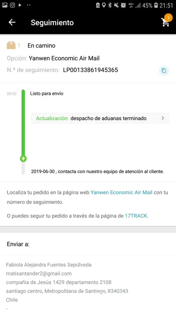 Ustedes han sido bastante negligentes ya que no he recibido mis productos, siendo que según el seguimiento ya llegaron a mi domicilio, quiero una solución y rapido, porque como dije son 3 productos de Ali Express en los cuales ustedes son la compañÃa asociada a estos productos, no puedo quedarme sin recibirlos, ya me ha pasado con otros los cuales no me fueron entregados, quiero que se dispongan a comunicarse conmigo mi correo es [protected]@gmail.com