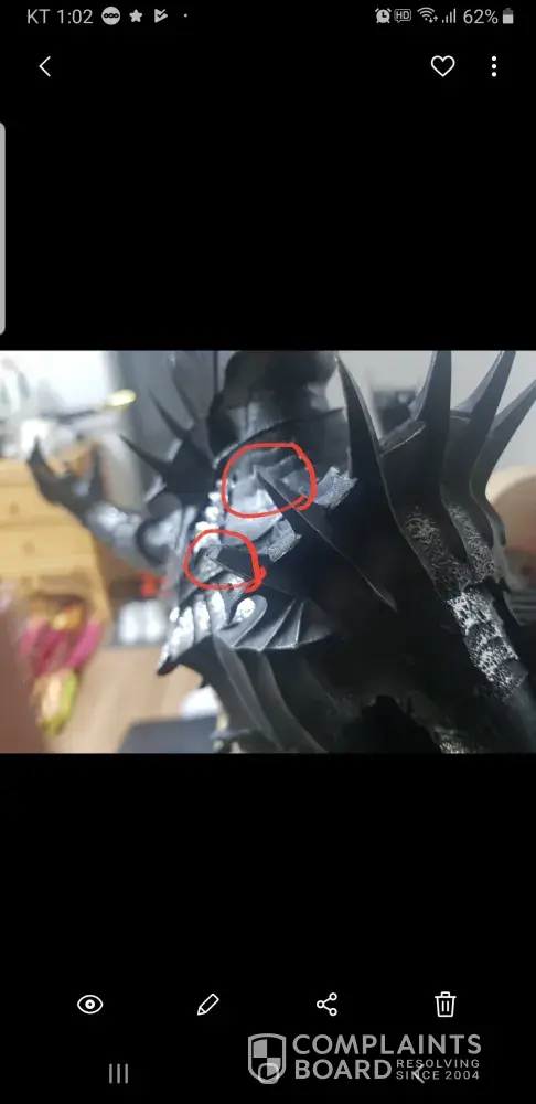 I bought an item in th ebay and the seller sent and I received it about 11:00 am April 19th in Korean time and the item was damaged when I opened it and it has never happened to any of my similar product The item was staue figure and dozen parts were broken and some parts are even missing This is totalyl unacceptable and the workshop says it takes at least 150 usdollars to fix it