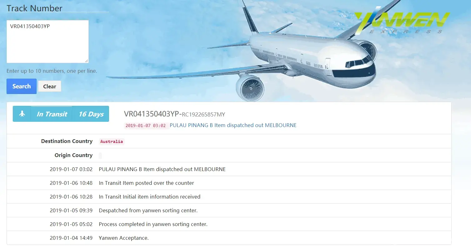 I just checked yanwen in China at www.yw56.com.cn .I'm going to complain to them as the address in UK seems to be a front company. Good luck