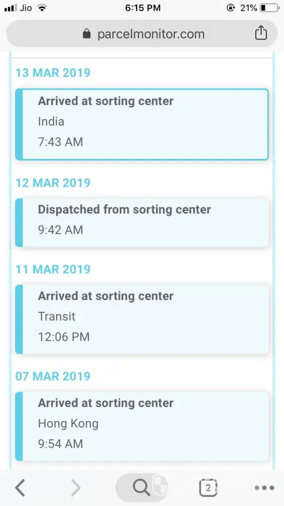 The parcel contains a mobile case which reached india sorting facility on 13 march 2019 but did not reach me till now