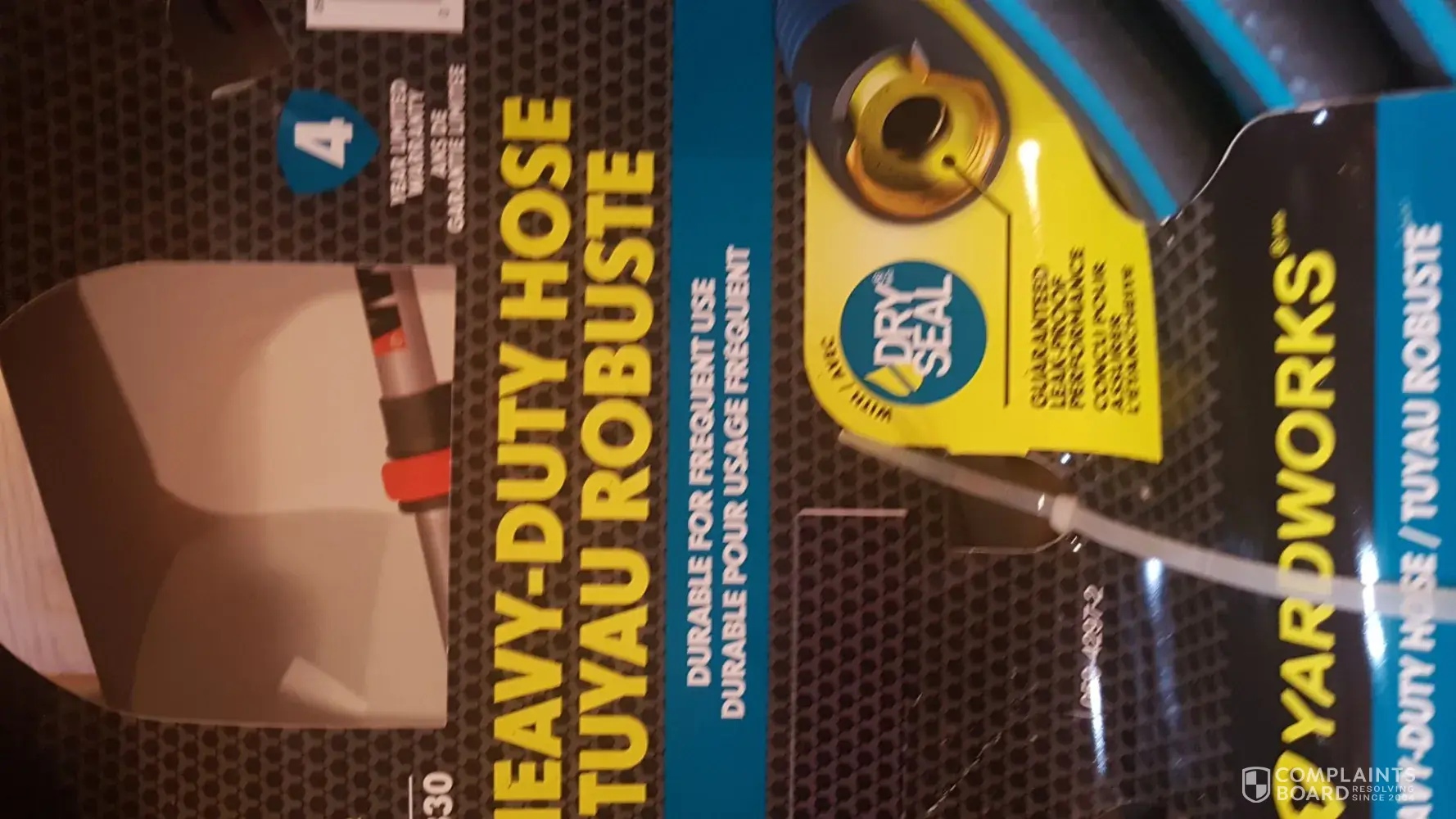 I bought this hose at Canadian tire today May 21st 2023. I went home, hooked it up and right away noticed it was leaking towards the end of the hose... I used the swivel handle at the end to tighten and where the hose connects to that end piece is where it was leaking and a lot... I turned off water then loosened and then tighten again and it leaked again AI could see the hose coming away from the end of gold piece of the end and then it just came off... I packed up the hose with cable ties as best I could and I will be taking it back to Canadian Tire tomorrow. What a piece of crap, hose from yard works for 80bucks... They better credit me