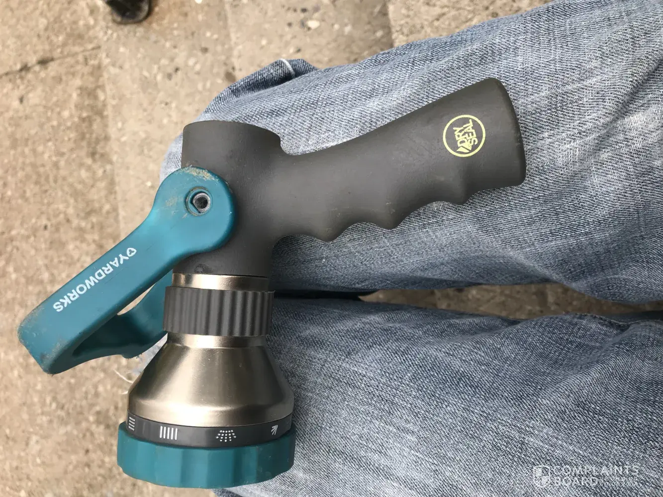 Loved the design but pricey at Lowe's last summer. Took it out this week to rinse car and dropped it on my driveway at a distance prox 3 ft then water started spraying all around the rubber grip.