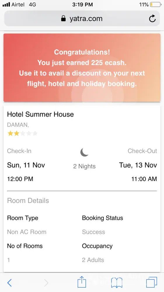 I forgot about the incident until I saw my bank statement with a transaction from Yatra.com for the tickets that were not booked.