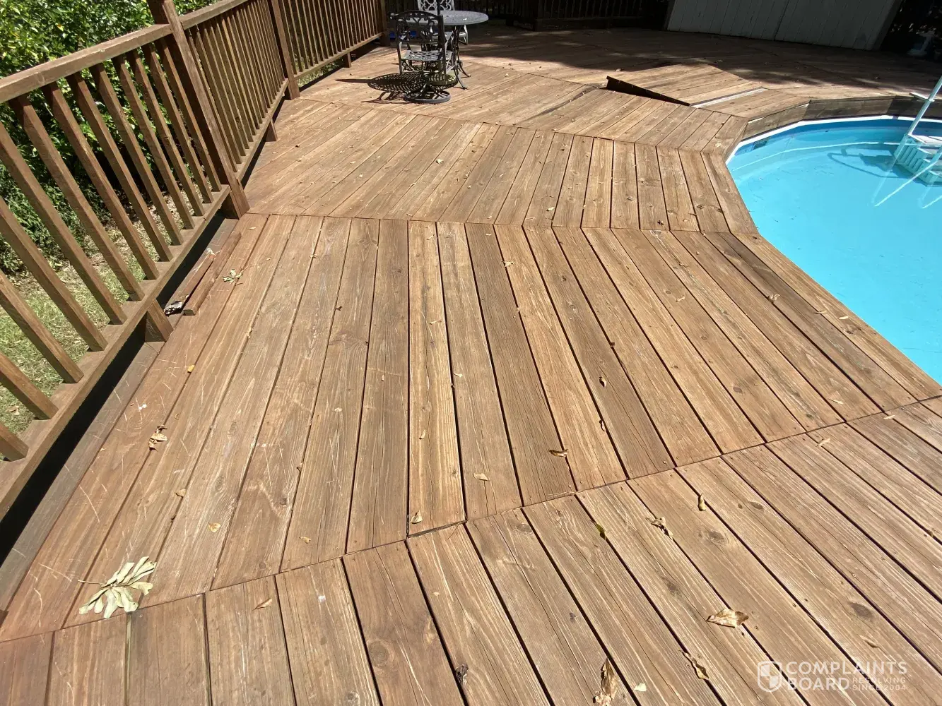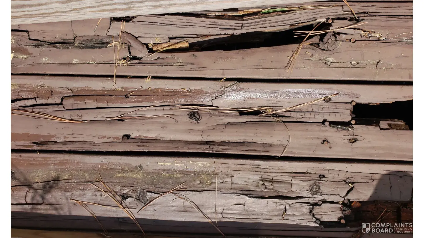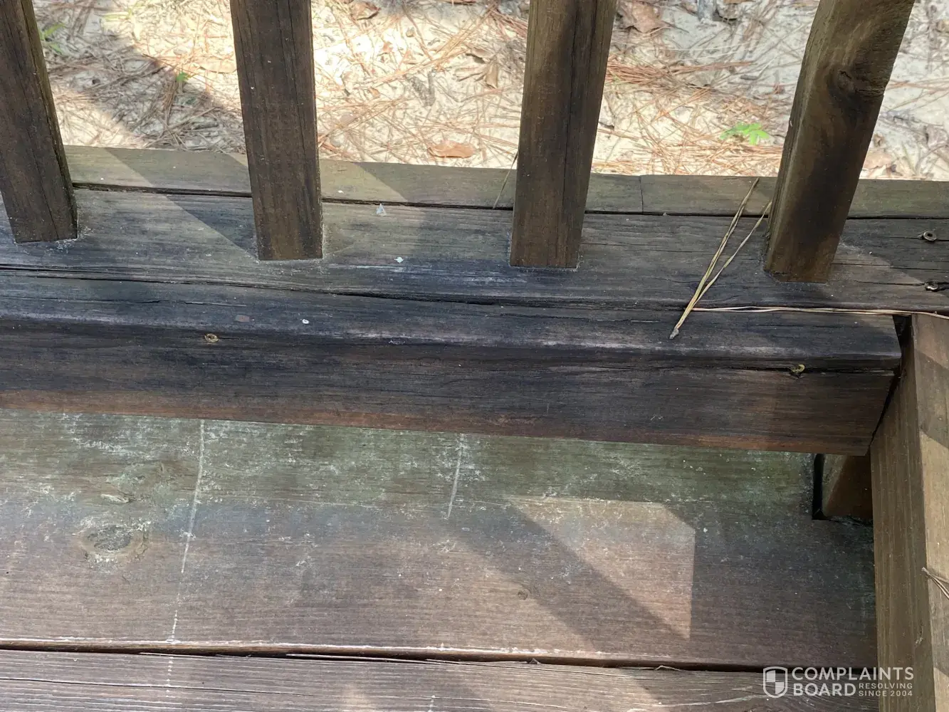 In 2021 the deck boards and support beams are rotting.