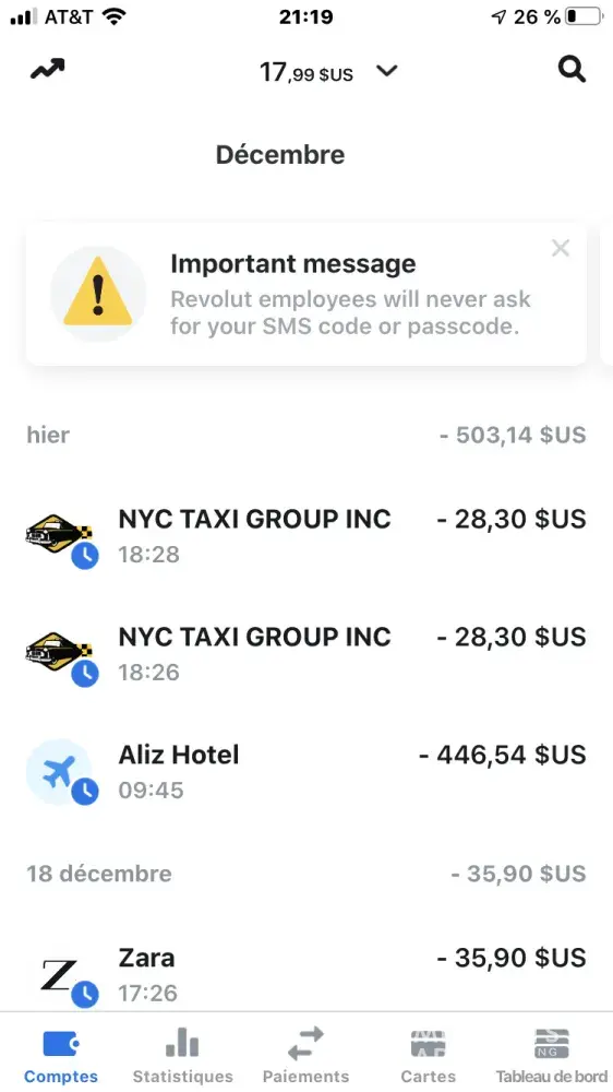 Taxi Fare paid twice on décember 19th. See attachment