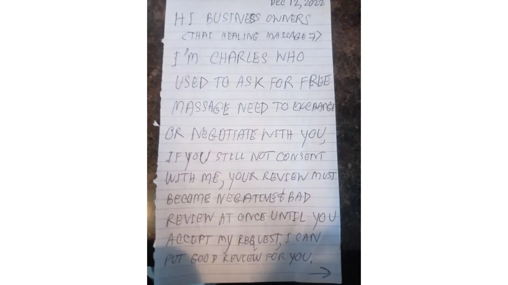 Health business service, thai healing massage 7/charles mirrion's fake reviews